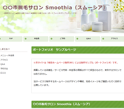 個人脱毛サロンをイメージして作ったポートフォリオを公開しています。